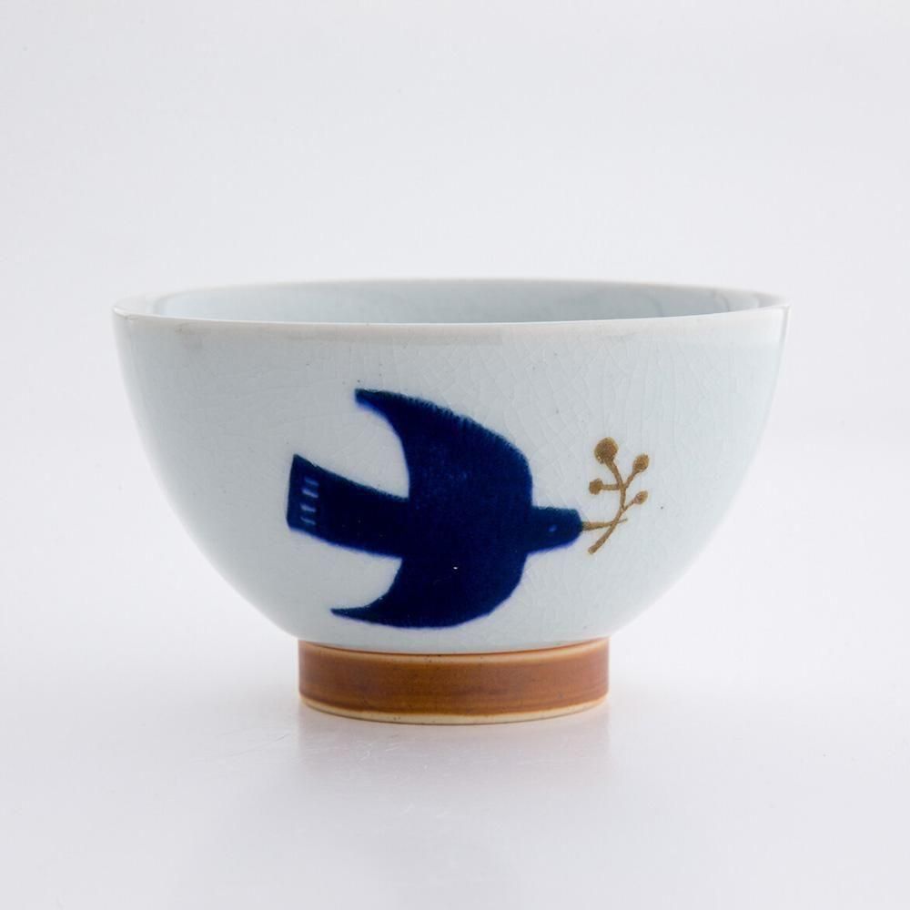 #小鳥のご飯茶碗 #ブルーバード #陶器 #磁器の茶碗 #飯碗 #ホワイト #ネイビー